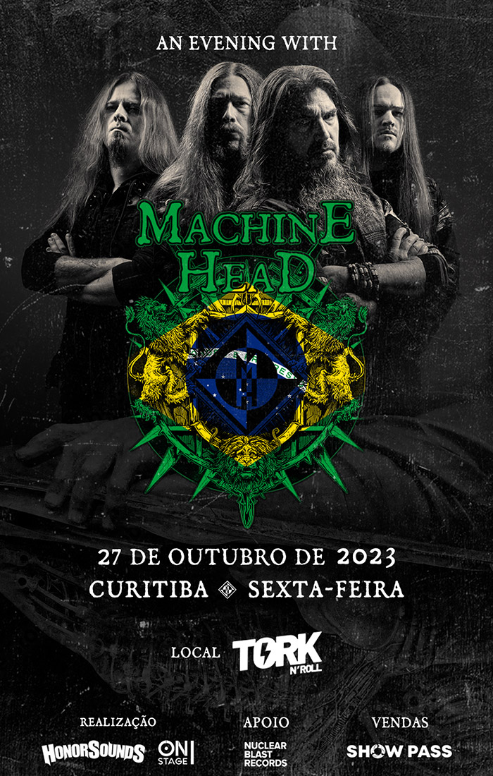 A prestigiada turnê An Evening With Machine Head, do grupo americano Machine Head, um dos colossos do metal mundial, chega ao Brasil na última semana de outubro, com três datas, incluindo Curitiba, que recebe a banda no dia 27 (sexta-feira), no Tork N’ Roll. Depois, seguem para Rio de Janeiro e São Paulo. Antes de chegarem ao nosso país, passarão por México, Venezuela, Costa Rica, Chile e Argentina.
