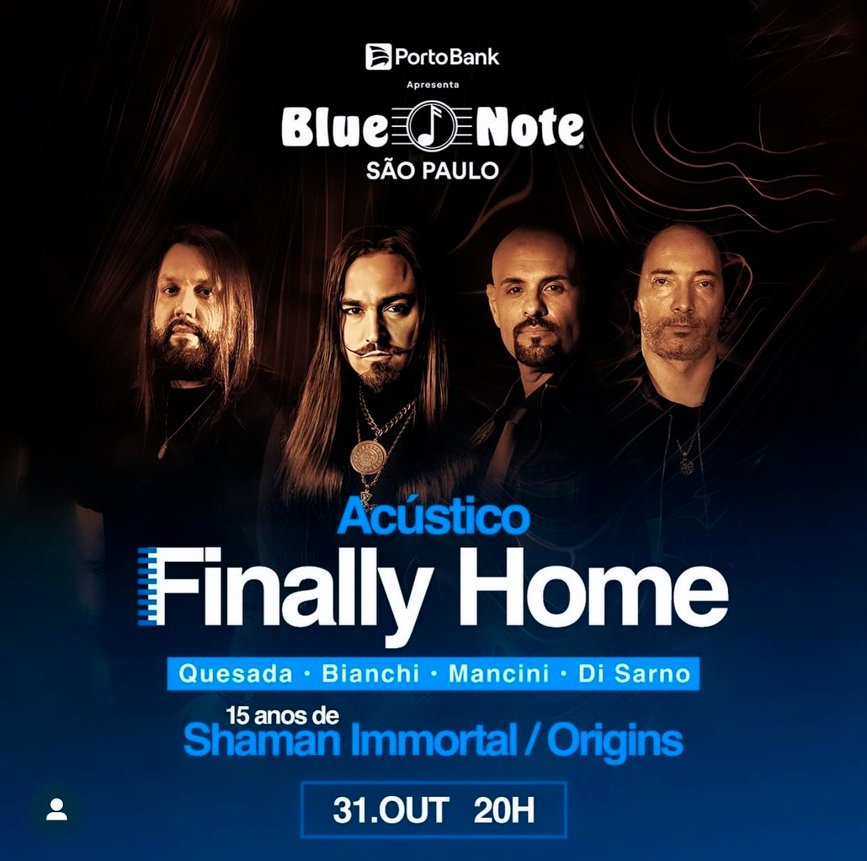 O projeto Finally Home, formado por ex-integrantes do Shaman, que se reuniram para relembrar músicas dos álbuns “Immortal” e “Origins” com lançamento acústico, celebra este momento com um show no Blue Note, em São Paulo, no dia 31 de outubro de 2023, noite de Halloween. Será uma noite única, exclusiva e especial com as participações especiais do baixista Luis Mariutti (Sinistra, ex-Shaman) e da vocalista Ciça Moreira.