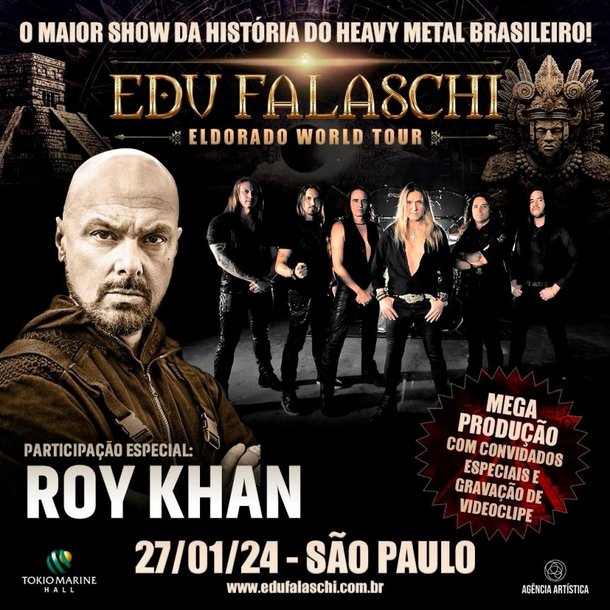 O que parecia ser impossível para os fãs de Heavy Metal, finalmente aconteceu. Durante participação no Flow Podcast, o vocalista Edu Falaschi anunciou a participação especial de Roy Khan, cantor da banda Conception e ex-vocalista do Kamelot em evento de lançamento de “Eldorado” no Tokio Marine Hall, em São Paulo, no próximo dia 27 de janeiro de 2024.