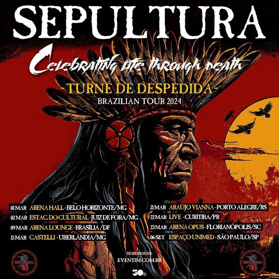 O Sepultura divulgou no último dia 08 de dezembro o fim das atividades após 40 anos. A turnê de despedida começa dia 1º de março do próximo ano, em Belo Horizonte, cidade onde a banda foi originada. Curitiba também está na rota do grupo: a Live Curitiba recebe o quarteto dia 22 de março, com ingressos a partir de 100 reais.