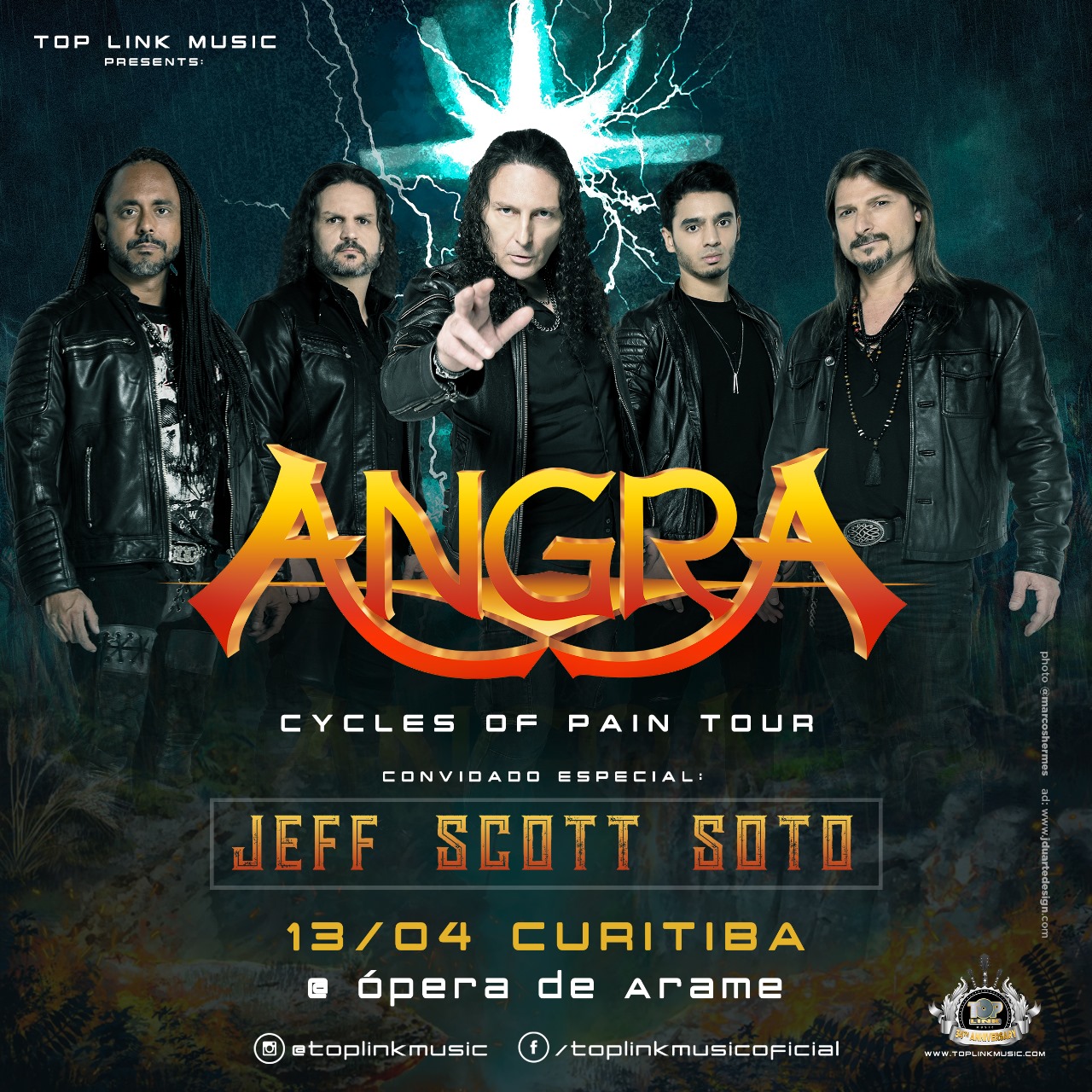 Aclamado desde os anos 1990 como um dos grandes nomes do metal brasileiro com alcance mundial, o Angra, empresariado pela Top Link Music, atualmente conta com os guitarristas Rafael Bittencourt e Marcelo Barbosa, o baixista Felipe Andreoli, o vocalista Fabio Lione e o baterista Bruno Valverde.