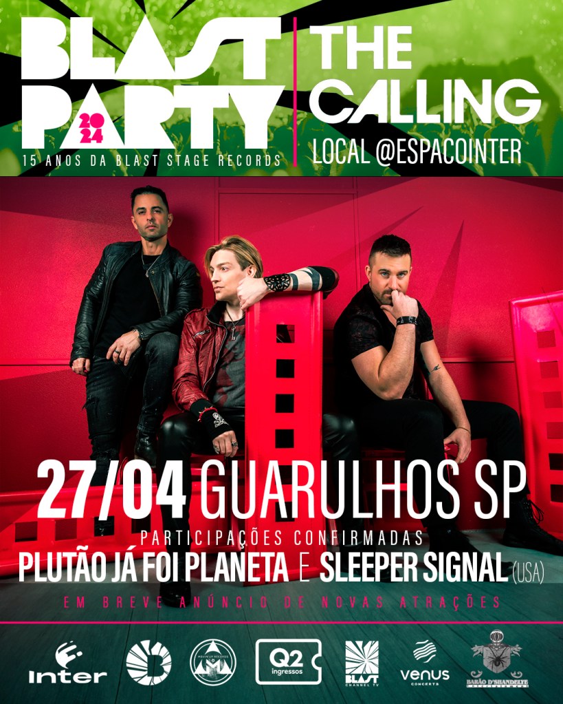 Em celebração aos 15 anos da gravadora Blast Stage Records, a Blast Party anunciou seu lineup com três nomes do rock contemporâneo: The Calling, Plutão Já Foi Planeta e Sleeper Signal. Mais bandas serão anunciadas ao longo dos próximos meses. O evento é uma realização da @Blastrecords e Tour By @venusconcerts. Os ingressos para a “Blast Party”, que acontecerá no dia 27 de abril no Espaço Inter, em Guarulhos (SP) e que custam entre R$ 85 e R$ 110, já estão disponíveis no site da Q2 Ingressos em https://quero2ingressos.com.br/events/the-calling-inter-garulhos.