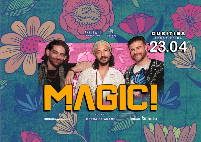 Uma das grandes sensações da música na última década, o MAGIC! retorna ao Brasil no mês de abril, e vem pela primeira vez a Curitiba no dia 23 de abril, no palco da Ópera de Arame, um dos cartões postais da capital paranaense. Os ingressos já estão disponíveis pela plataforma Bilheto, com possibilidade de parcelamento em até 12 vezes.