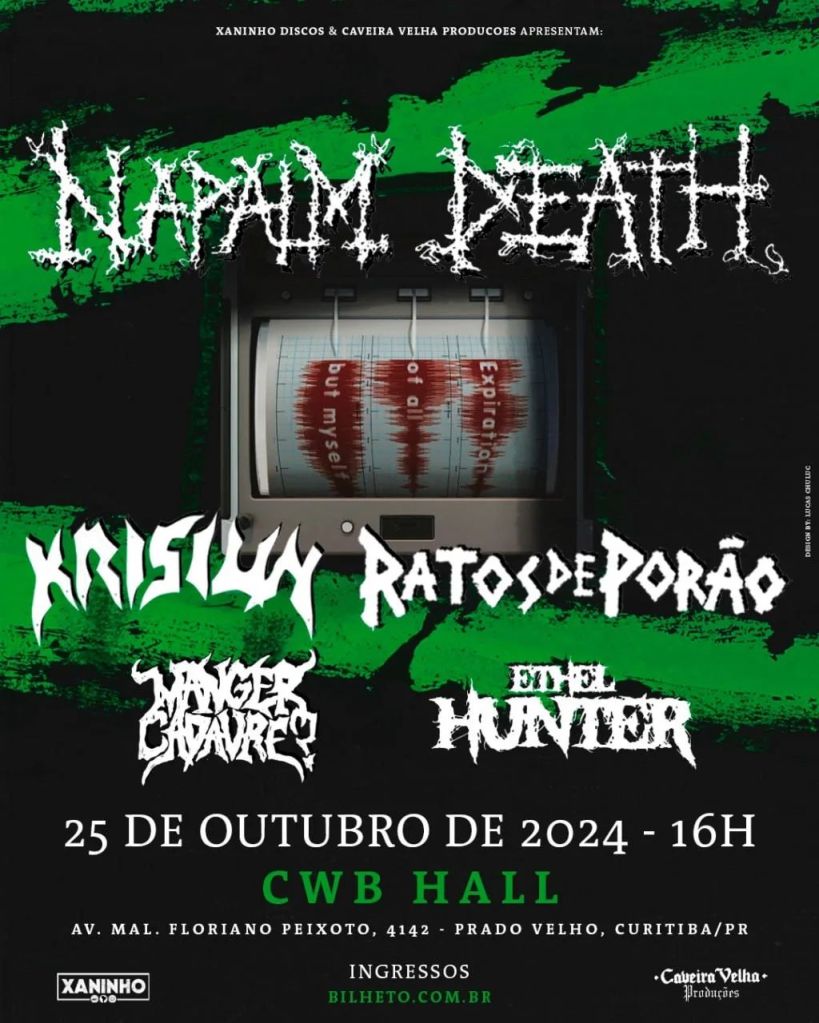 Além do Napalm Death, dois gigantes da barulheira nacional, Krisiun e Ratos de Porão, abrilhantam o evento na capital paranaense, além do Manger Cadavre? e a banda local Ethel Hunter.