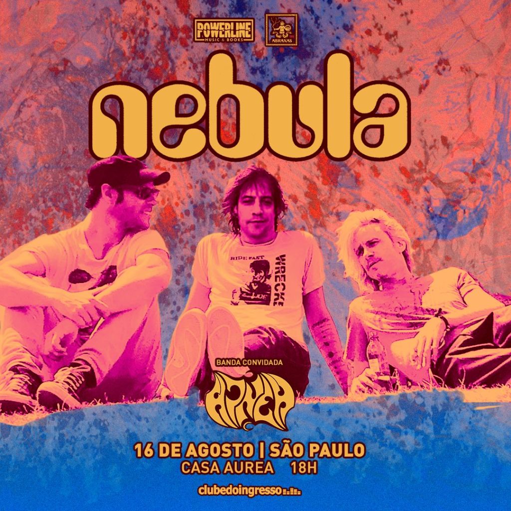 Formado na segunda parte dos anos 90 por dois ex-Fu Manchu e com os dois primeiros álbuns lançados pela icônica gravadora Sub Pop, o Nebula é uma banda clássica de stoner rock que atravessa décadas com seu único rock chapado, com toques de punk. O power trio enfim retorna ao Brasil em 2024 com show único em São Paulo, marcado para o dia 16 de agosto, na Casa Aurea.