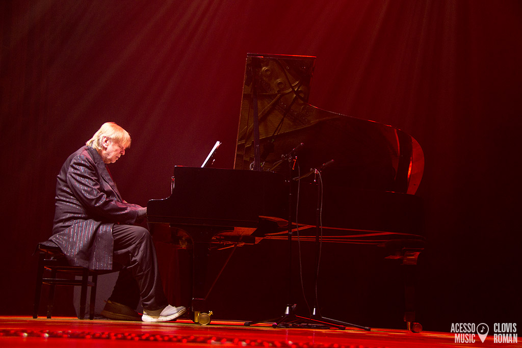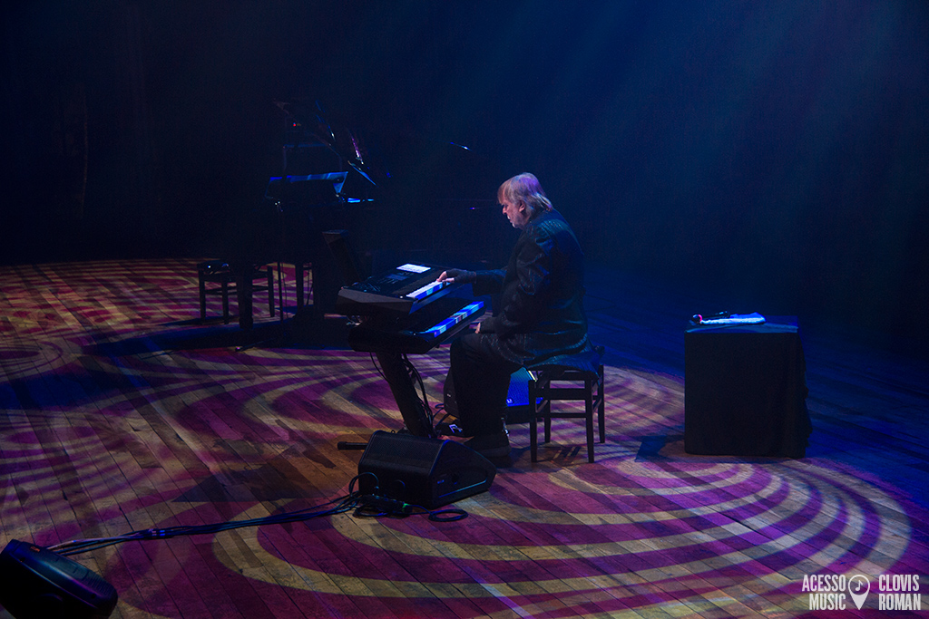 No palco, um Korg Nautilus a direita, e um piano a esquerda. Era tudo o que o público visualizava. Um cenário minimalista para um artista que ofereceu, no decorrer das décadas, músicas, obras e peças bastante rebuscadas e repletas de sonoridades. O próprio comentou isto, antes de apresentar a saideira “The Journey / Recollection”, duas das faixas de um de seus álbuns solo mais consagrados: “Gravei estas músicas com uma grande orquestra, um grande coro e uma grande banda. Mas eu escrevi Journey to the Center of the Earth no piano. Foi assim que as concebi”. No meio, ainda rolou uma citação a “In the Hall of the Mountain King”, do gigante Edward Grieg e presente no mesmo LP.