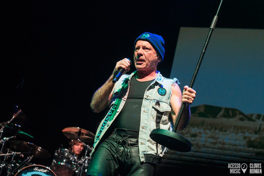Após a dobradinha metálica, a mais alternativa e descompromissada “Laughing in the Hiding Bush” mostrou novos caminhos para explorar o peso. Esta, foi uma das três oriundas do espetacular e normalmente renegado Balls to Picasso (1994). Outra foi a pérola e uma das maiores surpresas, a imponente e tensa “Gods of War” que, por mais genial que seja, não funcionou tanto ao vivo, quiçá, pela interpretação instrumental aplicada pela atual banda de Bruce, que consiste na baixista Tanya O’Callaghan (Whitesnake, ex-Dee Snider), a boa dupla de guitarristas Chris Declercq (ex-Blaze Bayley, vejam só) e Philip Näslund, além do curioso tecladista Mistheria (!) e do o fraco baterista Dave Moreno (Puddle of Mudd), que embolou algumas viradas e até mesmo andamentos mais retos. O solo de bateria dele não emocionou, tampouco.
