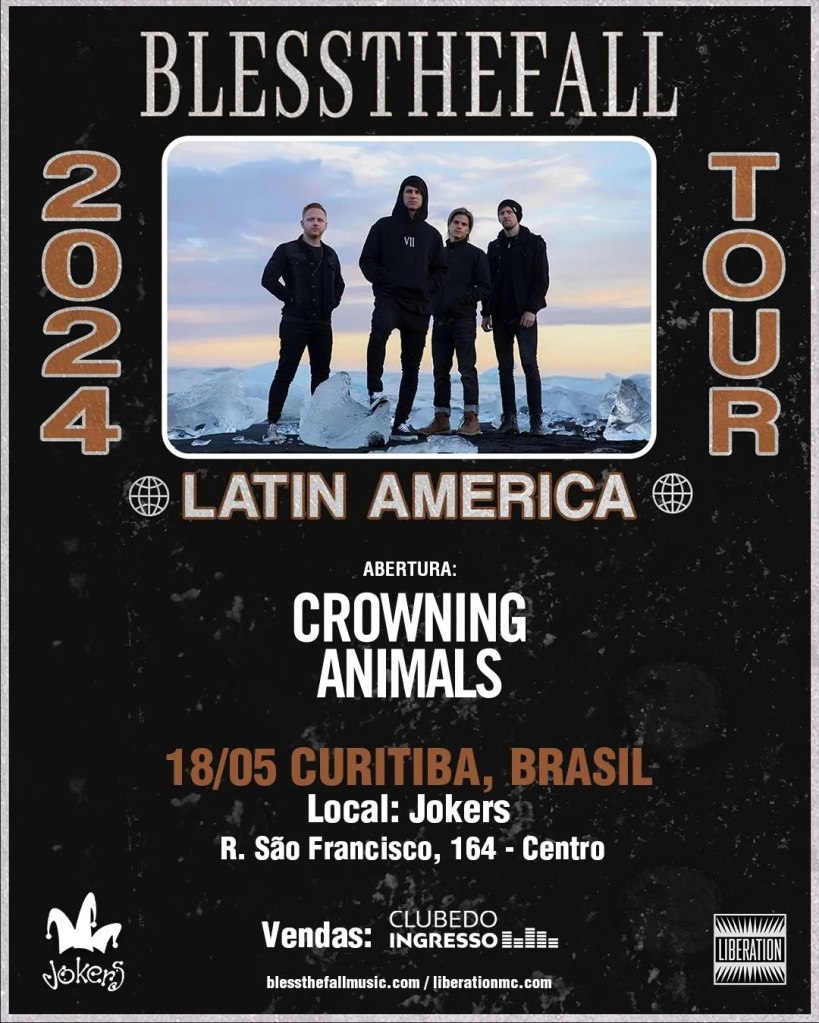 A esperada turnê de retorno dos norte-americanos do Blessthefall ao Brasil, que acontece agora em maio – mais uma vez com realização da Liberation Music Company – terá a participação de bandas nacionais nos shows: em Curitiba (18/05, Jokers), a Crowning Animals fará a abertura. Já em São Paulo (19/05, Carioca Club), o evento recebe a December e a Broad and Sharp.