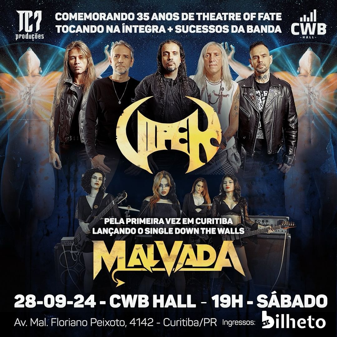 Por meio das redes sociais da produtora TC7, foi anunciado que no dia 28 de setembro, o Viper retorna a Curitiba com um show que celebra os 35 anos do clássico álbum Theatre of Fate, um dos maiores clássicos da história do heavy metal nacional. Para isto, o LP será excetuado na íntegra, junto a outros clássicos da lendária banda e faixas do último álbum, Timeless. Abertura com Malvada.