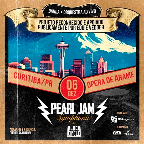 O show Pearl Jam Symphonic, com a banda Black Circle, chega a Curitiba no dia 06 de dezembro (sexta-feira), na Ópera de Arame, em Curitiba. Os ingressos estão à venda no Disk Ingressos, a partir de R$ 156,80.