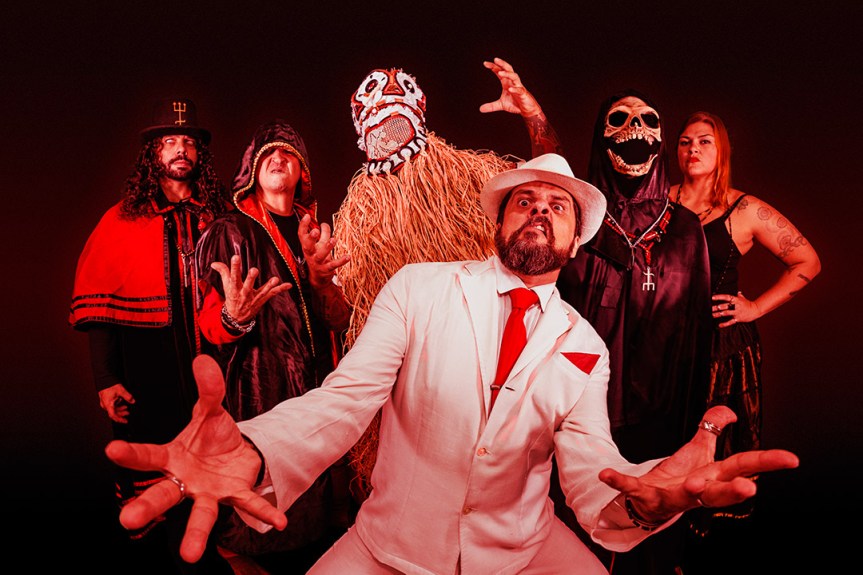 Em faixas como “Webchorume” e “Gangrenas Podres”, o tema das redes sociais, do cancelamento e de toda a loucura tecnológica entram no repertório da banda, com letras potentes que subvertem o modus operandi da nossa sociedade. Já em “Eguniversal”, a letra de Davi Sterminiun e Angelo Arede faz uma crítica ao fanatismo religioso e aos falsos profetas.