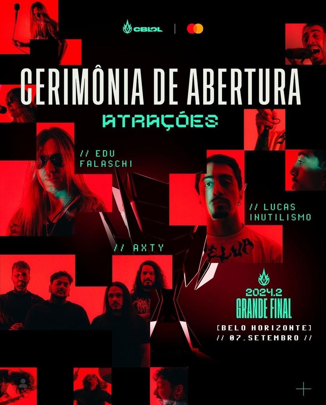 O CBLOL (Campeonato Brasileiro de League of Legends) anunciou uma surpresa especial para a Cerimônia de Abertura da Grande Final de sua edição de 2024, que acontece neste sábado, 7 de setembro, no Ginásio Mineirinho, em Belo Horizonte (MG). O renomado vocalista Edu Falaschi, conhecido por sua carreira no heavy metal, se apresentará ao lado do influenciador e músico Lucas Inutilismo e da banda AXTY, prometendo um espetáculo inesquecível para os fãs de eSports. Os artistas irão apresentar a música Novos Horizontes, oriunda de uma parceria entre os nomes e a desenvolvedora e o estúdio MDois. A Cerimônia de Abertura terá início às 13h.