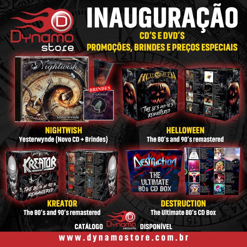 Entre os destaques do lançamento, está a chegada do novo álbum do Nightwish, Yesterwynde, disponível agora em versão física para o público brasileiro. Os fãs da banda poderão adquirir o CD e ainda receber brindes exclusivos em todas as compras. Este lançamento marca a estreia oficial do álbum no Brasil, uma iniciativa que reforça a parceria entre a Dynamo Records e os entusiastas do metal sinfônico. A loja também coloca no mercado boxes de bandas como Kreator, Helloween, Celtic Frost e Destruction.