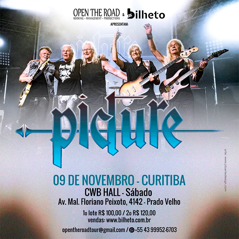A banda holandesa Picture é um dos mais íntegros nomes do heavy metal. Oriundos da Holanda, emplacaram discos clássicos para o estilo, tendo como ápice o irretocável Eternal Dark (1983). Após um show belíssimo, musicalmente falando, realizado na cidade ano passado, os veteranos retornam a Curitiba no dia 09 de novembro, novamente no CWB Hall. Os ingressos estarão a venda na Bilheto, a partir de R$ 100 (mais taxas).
