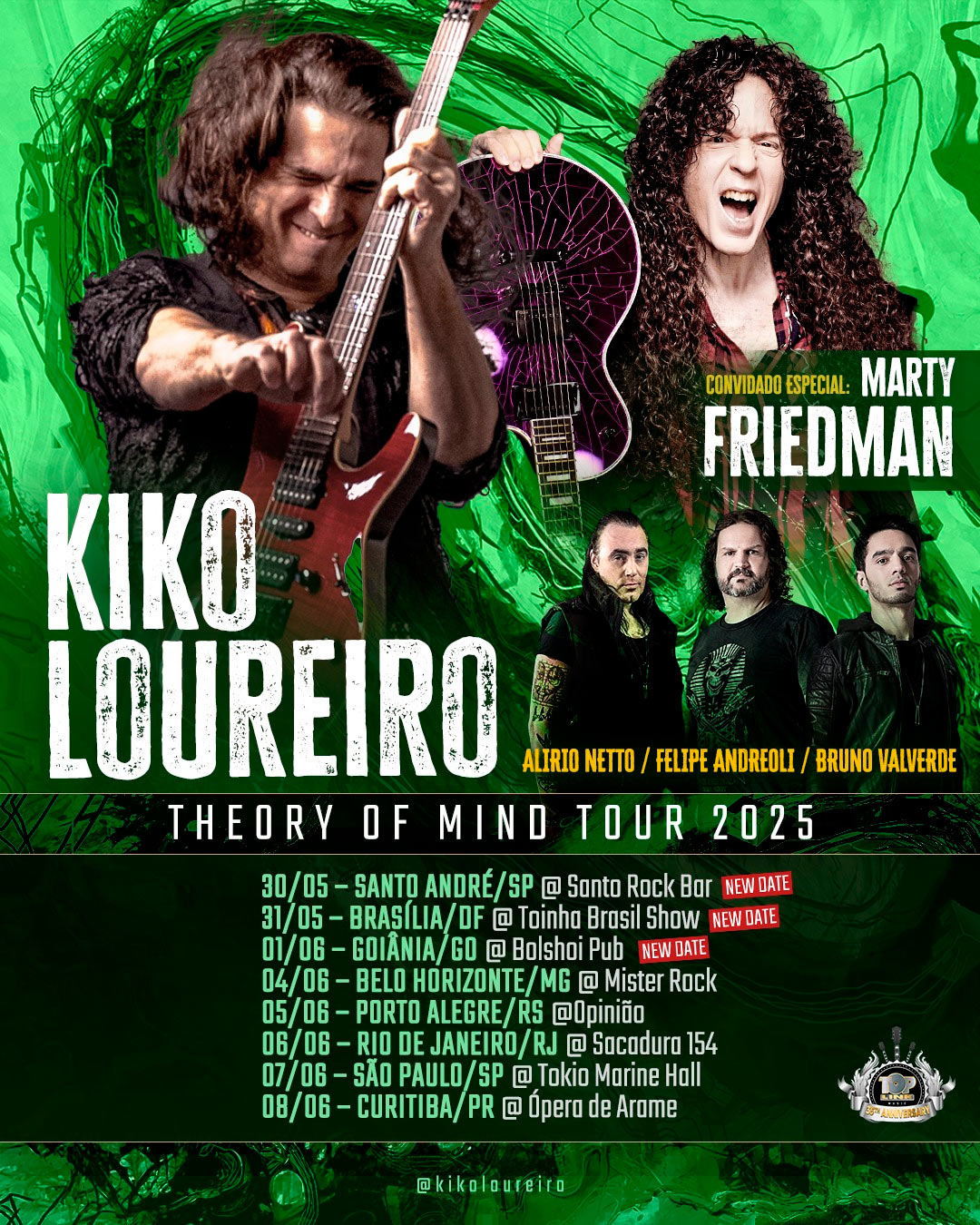 A entrevista também foi palco para falar da Theory of Mind Tour, que celebra o novo álbum solo de Kiko e traz como convidado especial o icônico guitarrista Marty Friedman, ex-Megadeth. A turnê, promovida pela Top Link Music, passa por oito cidades brasileiras a partir do dia 30 de maio.