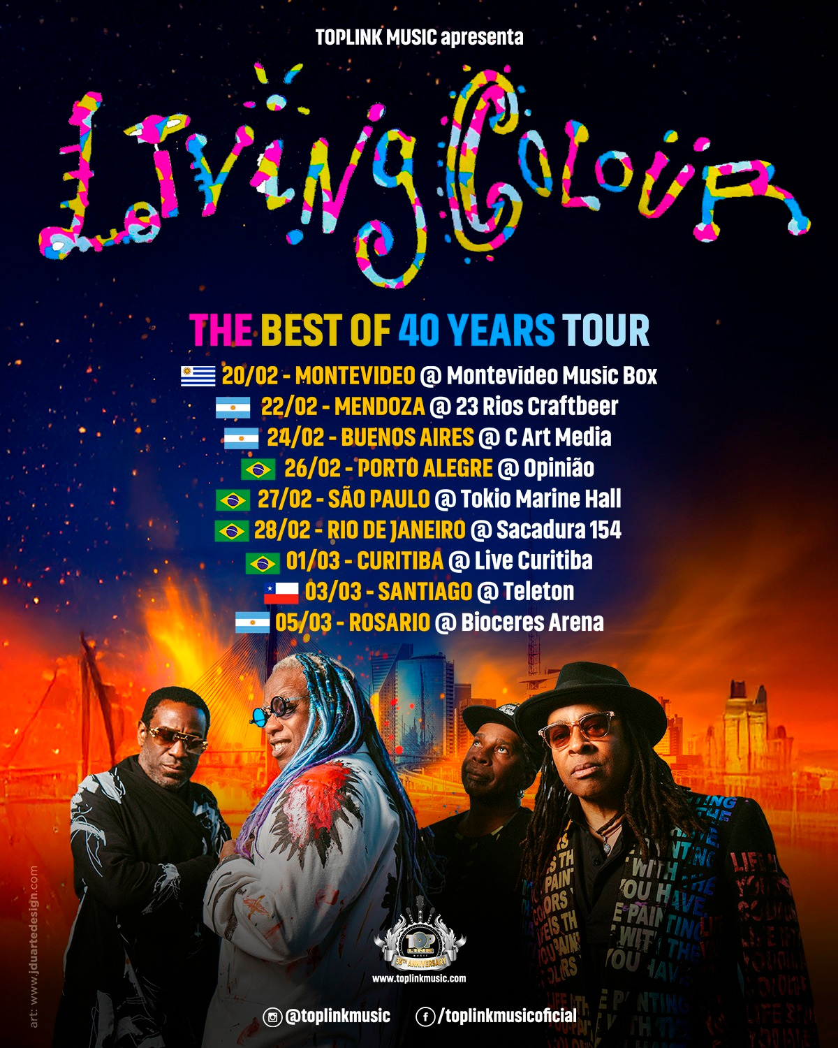 Com essas palavras, Doug Wimbish, baixista do Living Colour, expressa o forte vínculo da banda com o Brasil. Em 2026, o grupo celebra quatro décadas de carreira com a turnê “The Best of 40 Years Tour”, que inclui passagens por Porto Alegre (26/02), São Paulo (27/02), Rio de Janeiro (28/02) e Curitiba (01/03), além de datas na Argentina e no Chile.