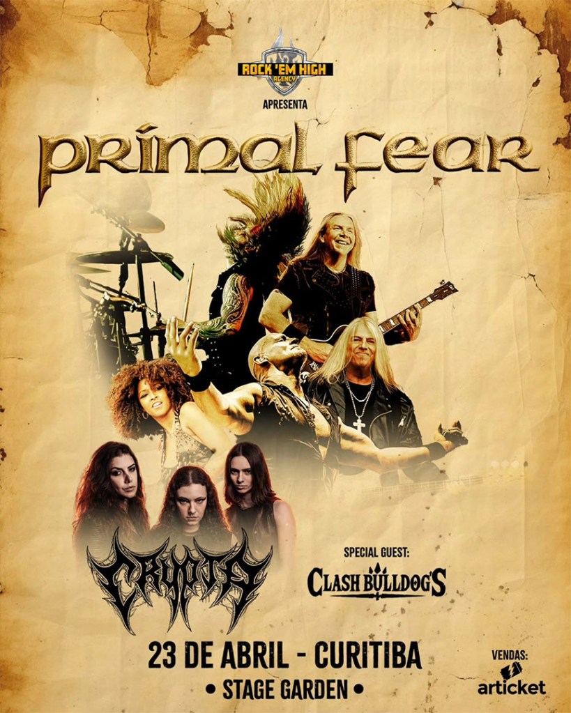 A capital paranaense recebe, nesta quinta-feira (23), um encontro de peso para os fãs de heavy metal. As bandas Primal Fear e Crypta sobem ao palco do Stage Garden a partir das 19h, prometendo uma noite de celebração ao gênero em suas vertentes clássica e extrema. Ainda restam ingressos através da plataforma Articket, por valores a partir de R$ 150. A abertura da noite fica por conta do grupo Clash Bulldogs.